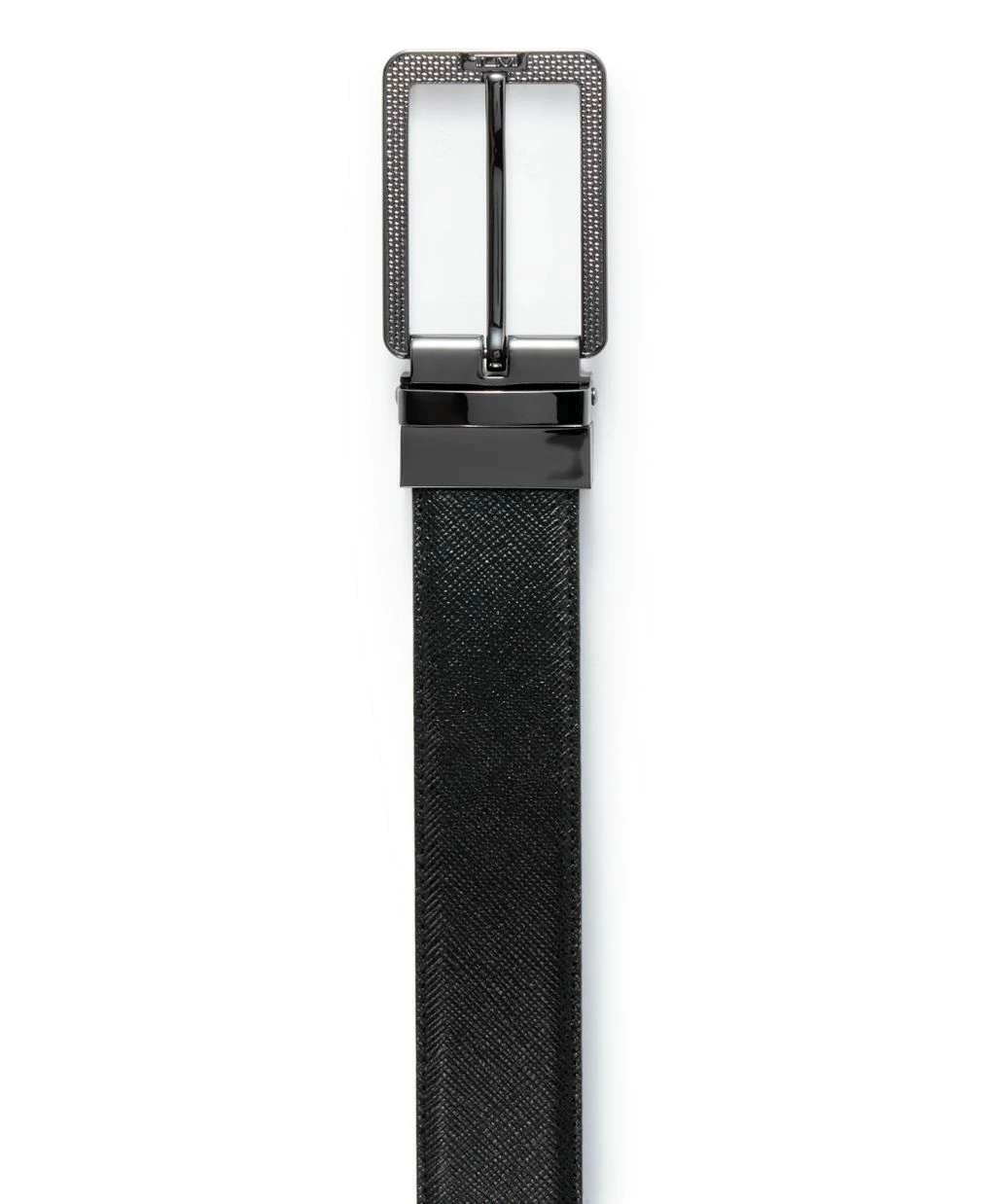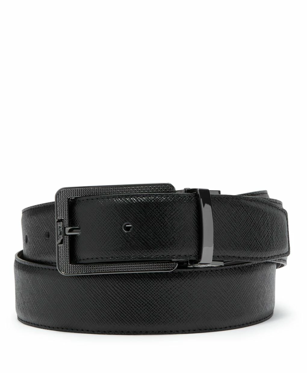 This reversible leather belt design is all about texture. Both the strap and buckle are embossed with a modern pattern reminiscent of TUMI’s signature ballistic nylon.
