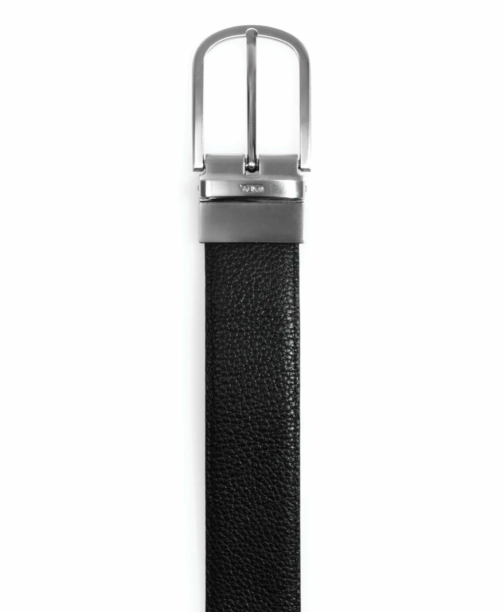 This reversible leather belt has a smooth-to-the-touch texture on one side and soft pebble grain on the other. The TUMI logo is subtly engraved on the nickel buckle making this belt a wardrobe staple.