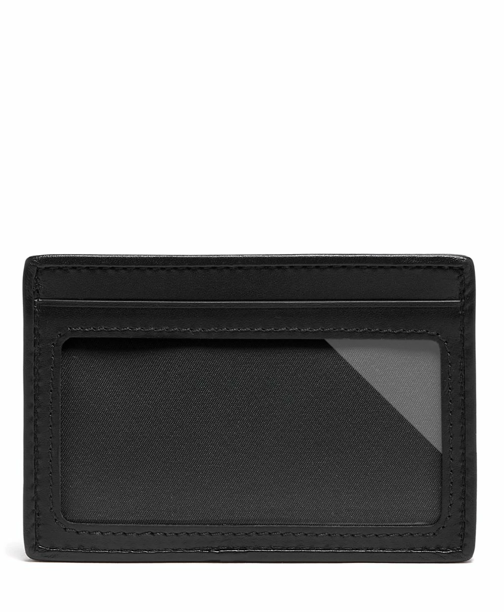 Keep life simple with this elegant, slim card case. It features two card slots, as well as an ID window and a subtle slip pocket for bills and receipts.