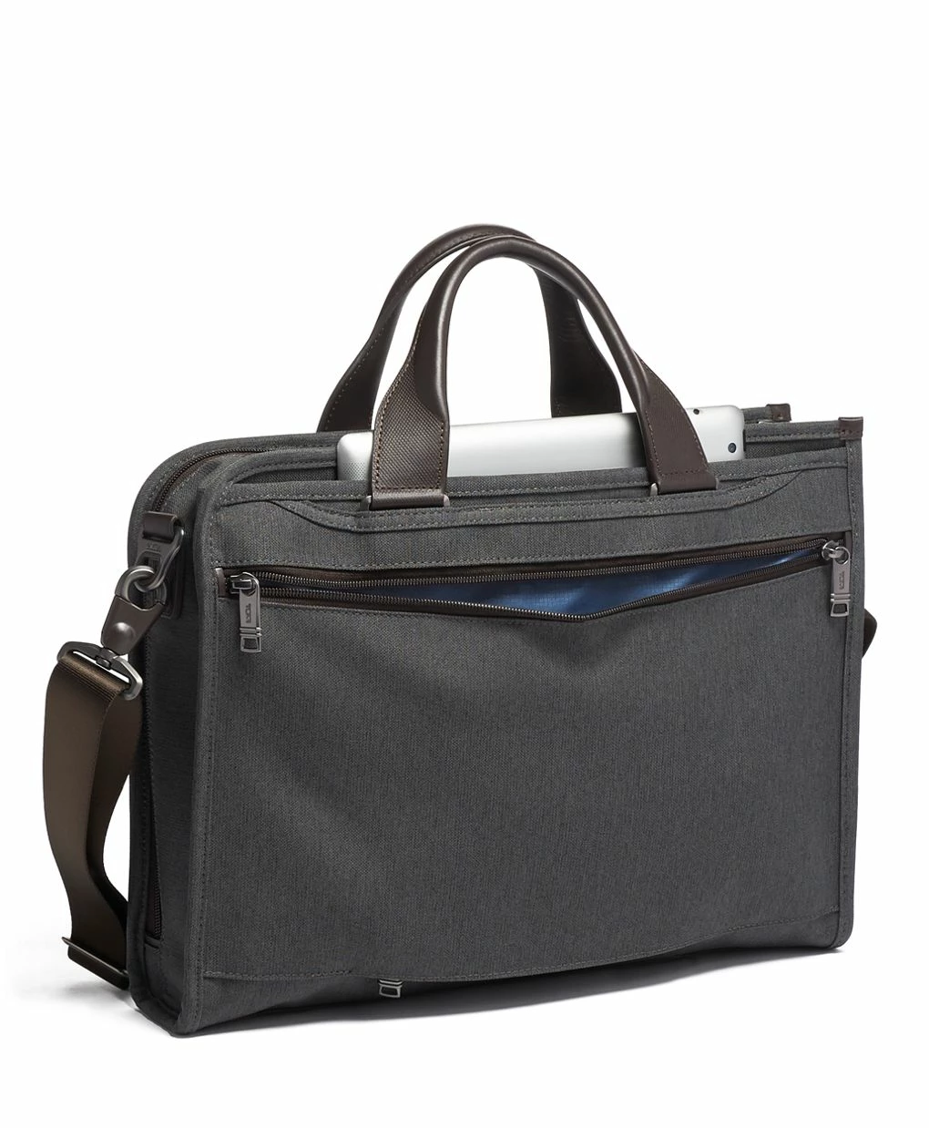 This slim portfolio-style brief carries what you need for the work or school day. It’s compact and well organized with a spot for a tablet and other tech and business accessories.