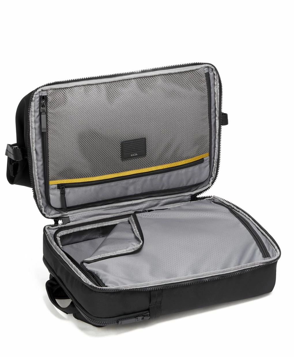 - Split-case interior with zipped compartments and mesh zip pocket
